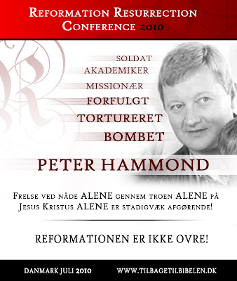 På bibellejren Reformation Resurrection 2010 vil Dr. Peter Hammond skal undervise i læren om retfærdiggørelsen, evangelisering, bibelsk manddom og bibelsk kvindelighed, Herrens dag, og fortælle inspirerende historier om reformatorerne. Gå ikke glip af denne sjældne mulighed for at blive udsat for